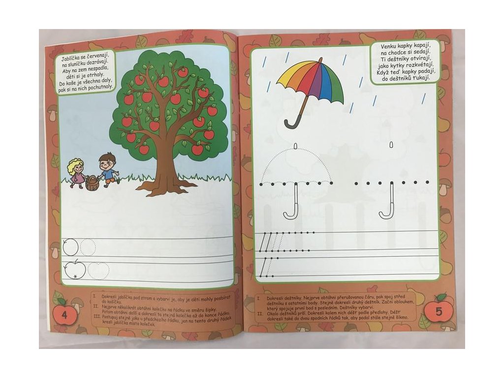 Pracovní sešit pro 4 - 5leté děti je zaměřen na procvičení kruhu, čáry plynulé, vodorovné, šikmé, svislé, křížení čar, spodního a horního oblouku, elipsy a spojování bodů. Na tvorbě pracovních sešitů se podílel široký kolektiv učitelů s bohatými teoretickými znalostmi i praktickými zkušenostmi.