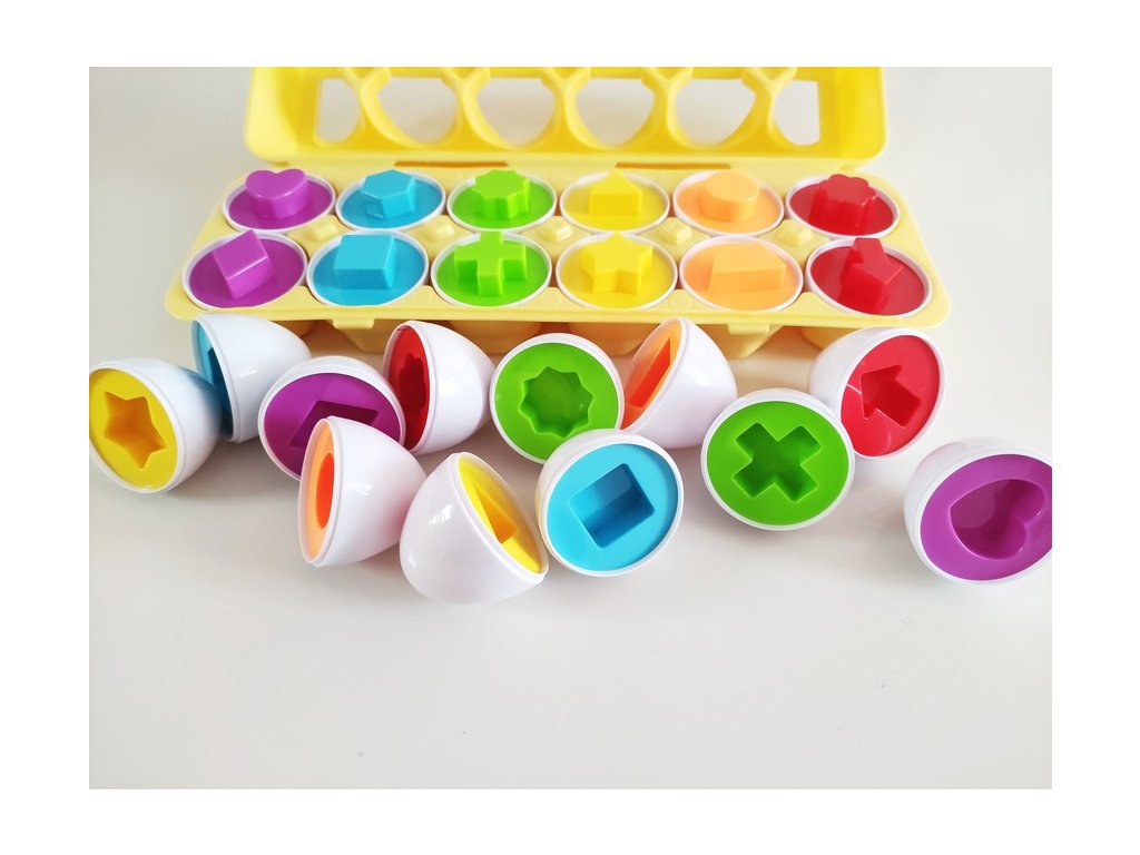 Rozbalte si svá vajíčka, která jsou uložena v praktickém obalu. Vajíčka můžete postupně otevírat a hádat, jaké barvy a tvary se uvnitř ukrývají. Nejsou to ale překvapení k jednorázovému použití. Tato edukační pomůcka děti zaujme a pomůže jim bezpečně a formou hry poznávat barvy a tvary.