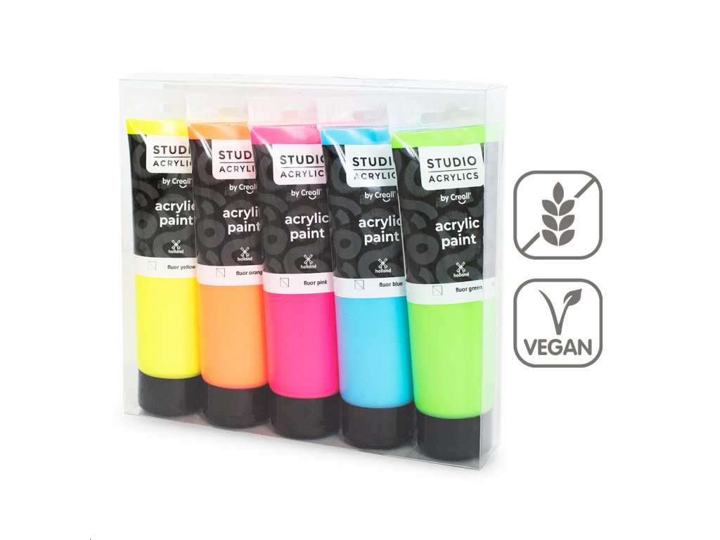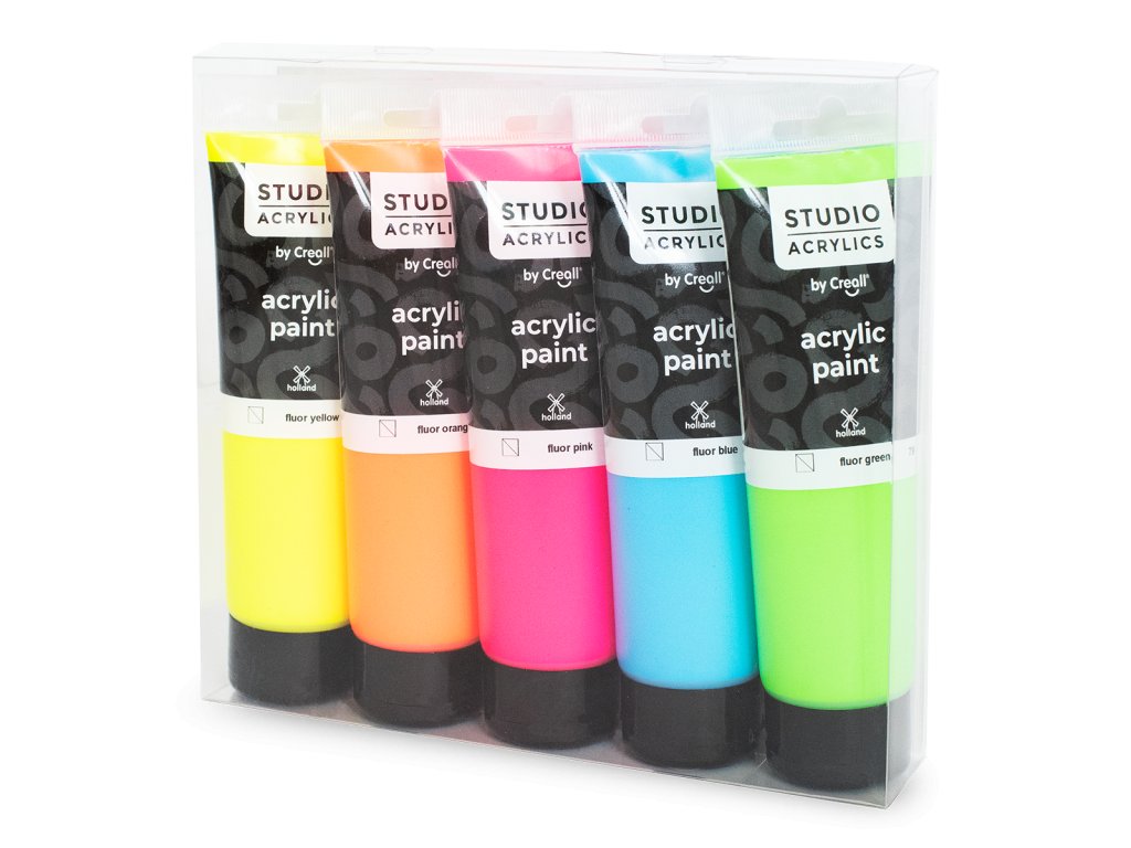 Súprava fluorescenčných akrylových farieb Studio acrylics, 5 × 120 ml, mix farieb