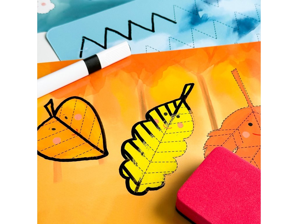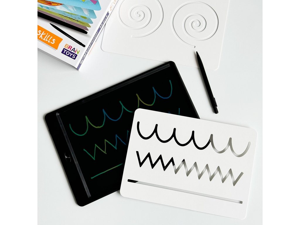 - kreslenie po predlohe: Vďaka šablónam s grafomotorickými cvičeniami môžu deti sledovať čiary a vzory, čím si trénujú presnosť a koordináciu.