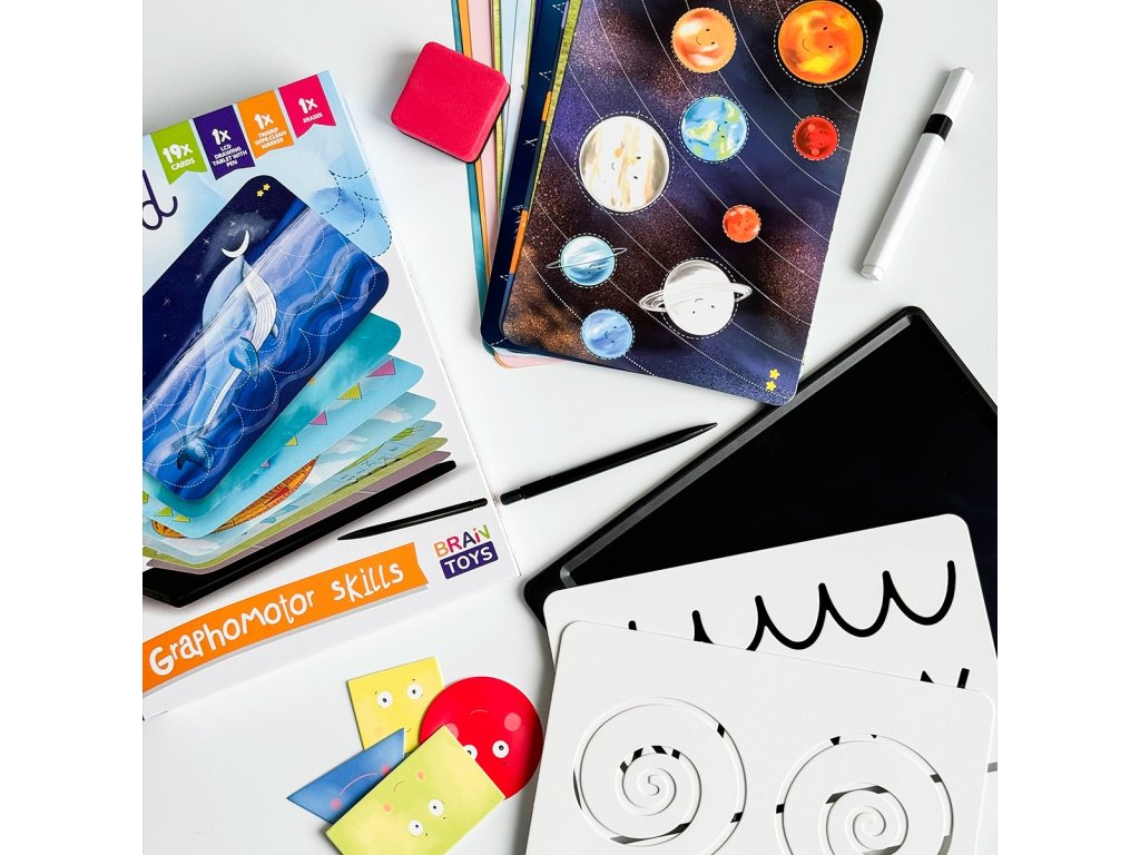 EduPad od BrainToys je inovatívny set navrhnutý tak, aby deťom pomáhal rozvíjať jemnú motoriku a grafomotorické zručnosti hravou formou. Táto revolučná pomôcka kombinuje digitálny tablet s kartami, ktoré sú plné zábavných a vzdelávacích úloh. EduPad deti nielen zabaví, ale aj prirodzene pripraví na písanie a podporí ich sústredenie, tvorivosť a zručnosti.