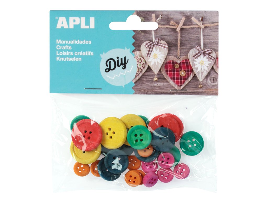Drevené dekoratívne gombíky v rôznofarebnom vyhotovení určené na tvorbu dekorácií, kreatívne a pedagogické aktivity.Dodatočné parametre