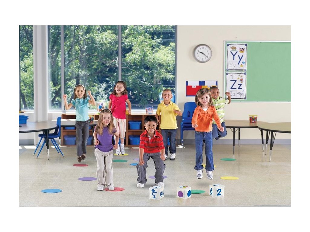 Buď aktívny! Postav sa na farebné podložky a hoď obriu kocku, ktorá ti ukáže cvik a počet opakovaní. Táto zábavná hra pomáha deťom naučiť sa rôzne pohybové cviky hravou formou.