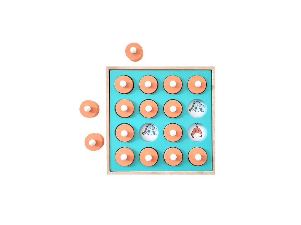 Klasické pexeso sa zmenilo. Býva v peknej drevenej krabičke a obrázky sa schovávajú pod drevenými vrchnáčikmi. Hra môže mať niekoľko úrovní a preverí tak: