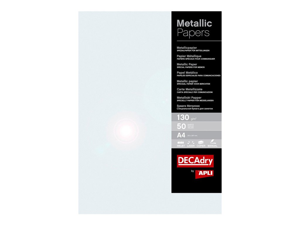 Papier s metalickým leskom na tvorenie dekorácií a výtvarné práce. Vhodný na ručný popis aj do tlačiarní.Dodatočné parametre