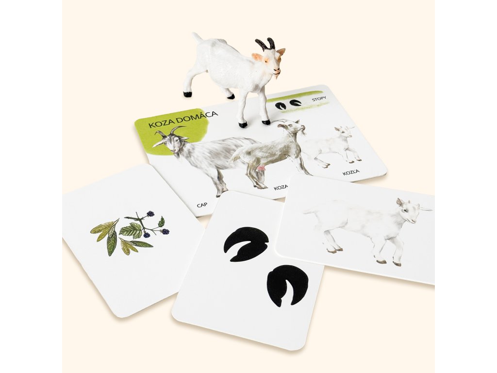- 12 kariet vo formáte A6 (na prednej strane sa nachádza názov zvieraťa, vyobrazenie samca, samice, mláďaťa a stopa, ktorú zanecháva; na zadnej strane je stručný text a vyobrazenie prirodzenej potravy, ktorou sa zvieratko živí)