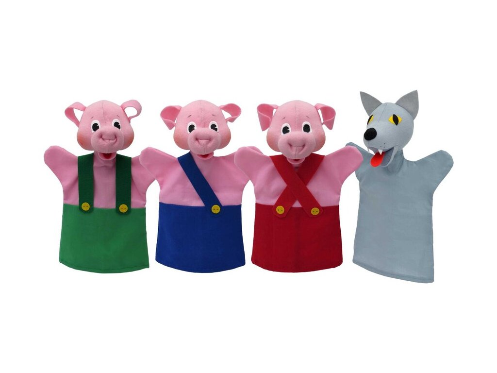 Komu sa nelení, tomu vlk domček len tak nevyfúkne, teda neodfúkne. Šikovné prasiatka to vedia a tie menej šikovné, majú šikovného brata. Vymyslite si so sadou maňušiek rôzne dobrodružstvá a príbehy a porozprávajte ich svojmu dieťatku. Hranie s bábkami výborne stimuluje ich fantáziu a kreativitu a tiež im pomáha začať osmeliť sa na verejnosti.