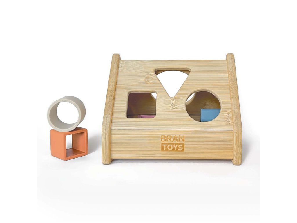 - bambusovú vkladačku s geometrickými tvarmi (17cm x 14cm x 14,5cm)