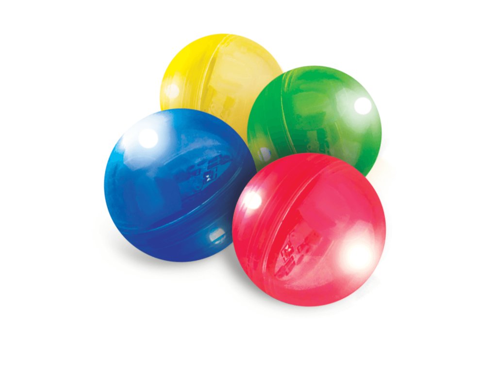 - 4 farebné svetielkujúce guľôčky (žltá, modrá, zelená a červená)