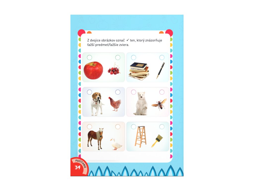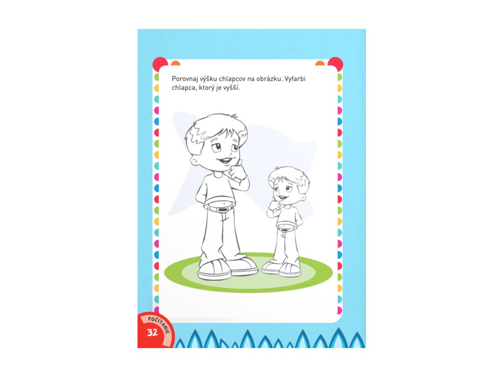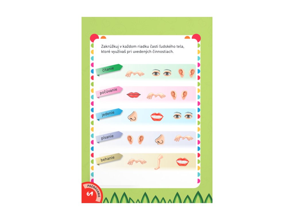 V pestrofarebnej cvičebnici nájdete širokú škálu úloh zaradených do 4 tematických kategórií: kreslenie, počítanie, poznávanie a zábavný mix. Rôznorodá skladba zadaní predstavuje spojenie zábavy, hravosti, kreativity a nenúteného vzdelávania až na 128 stranách. Vypĺňaním úloh si dieťa precvičí motoriku, zlepšuje si svoj všeobecný prehľad, nadobúda prvé vedomosti, formuje si logické myslenie a predstavivosť - čím si vytvára pevný základ pre budúce vzdelávanie.
