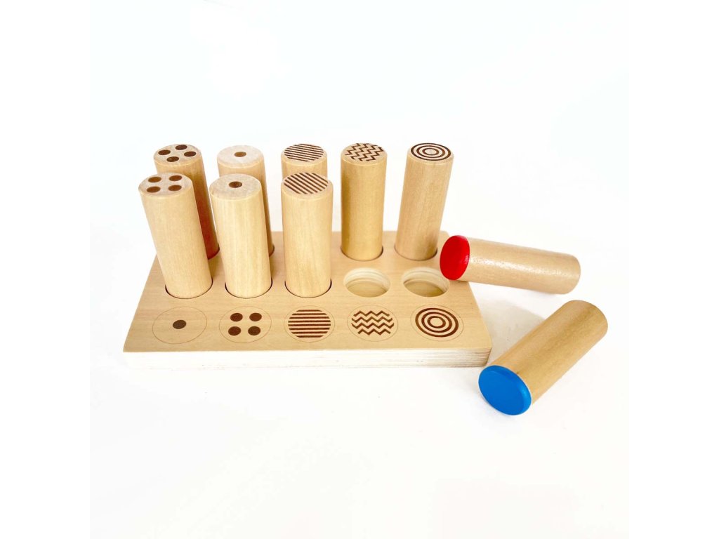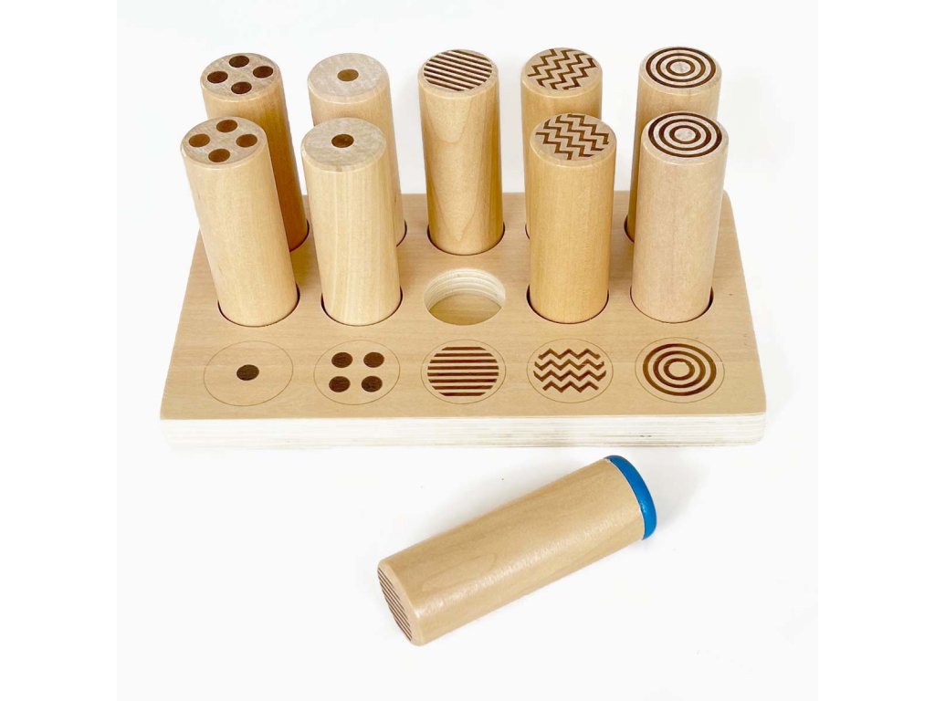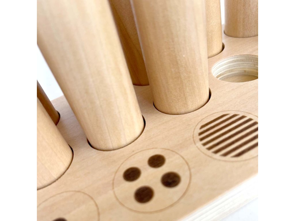 - 5 dvojíc zapečatených drevených valcov (dĺžka 8,5cm, priemer 3cm)