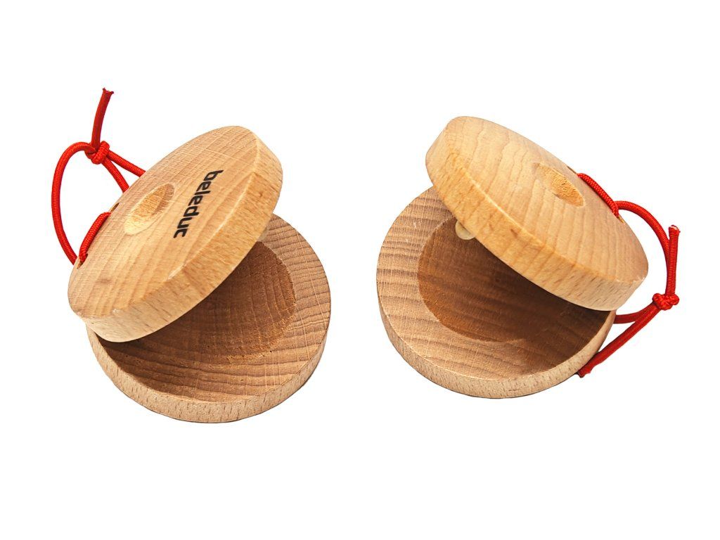Tieto praktické drevené nástroje sa vďaka elastickej šnúrke automaticky otvárajú, a preto sa na nich veľmi ľahko hrá. Obsahuje 6 párov.