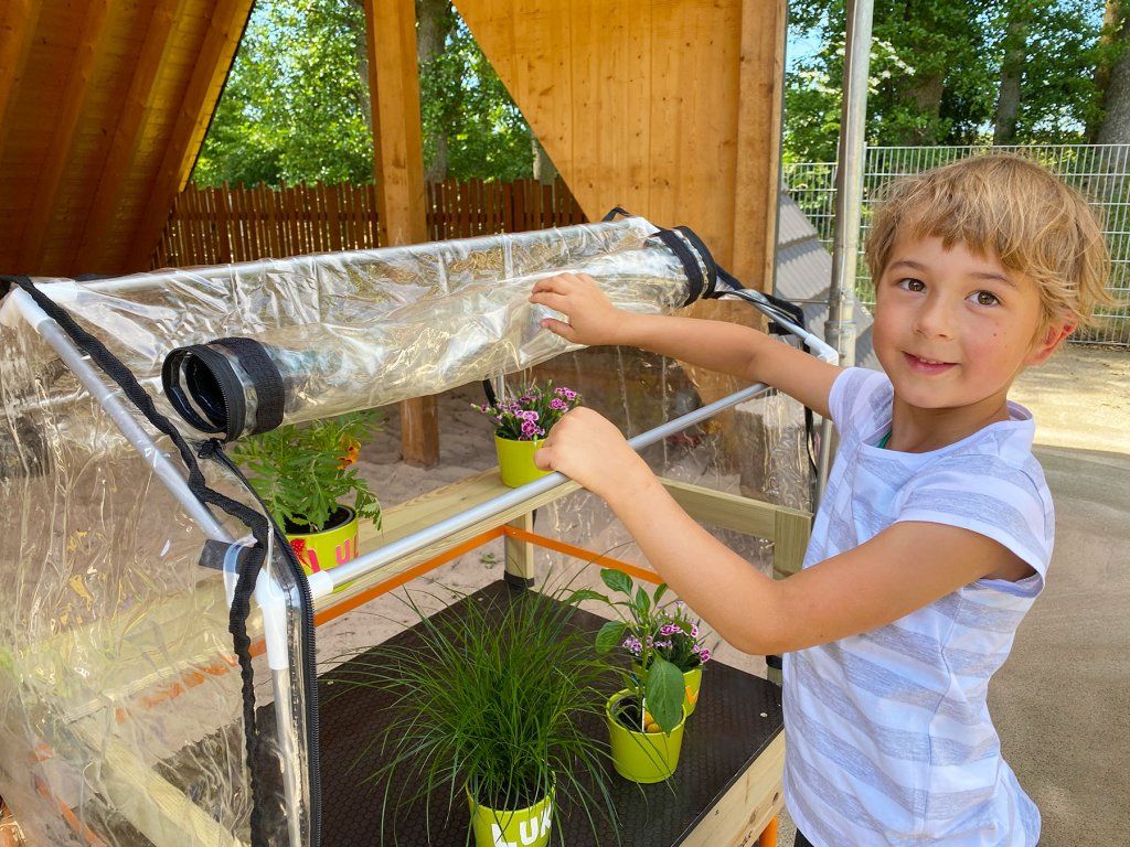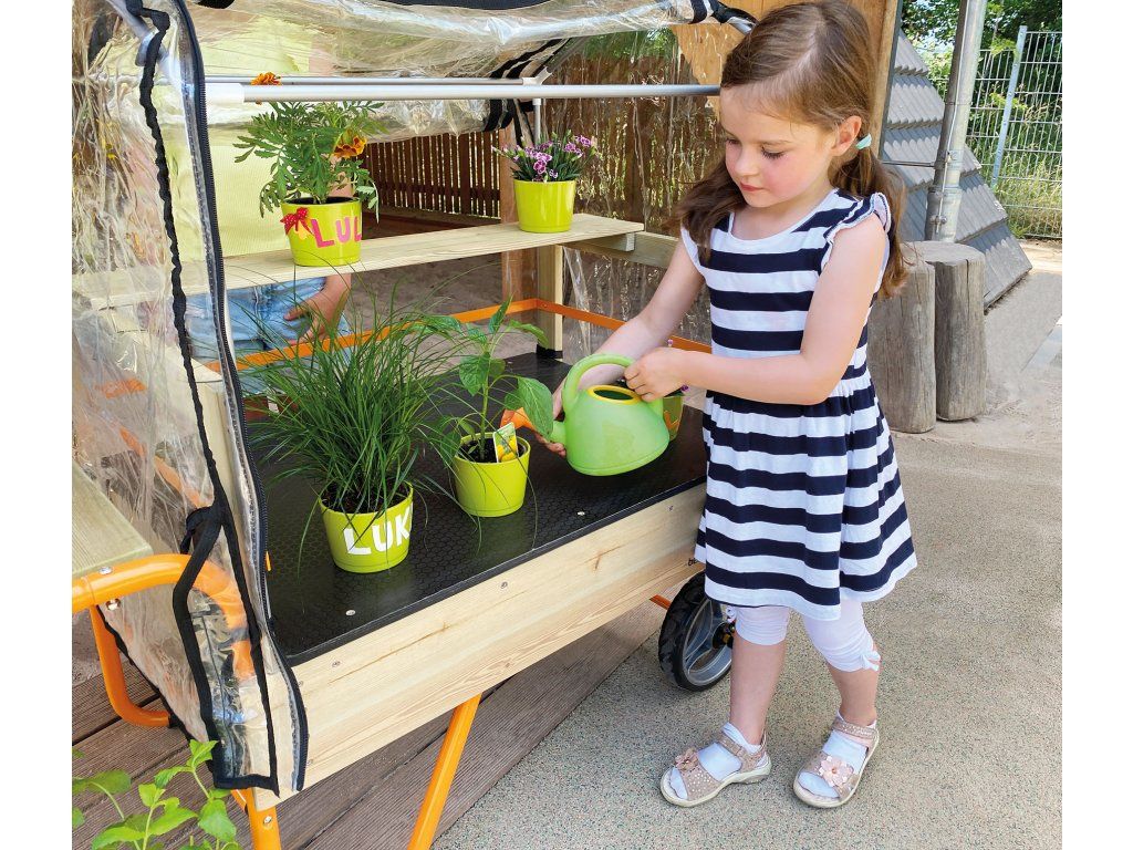 Skleník umožňuje dětem objevovat botanický svět tím, že se samy stanou zahradníky. Mohou sázet květiny, koření, zeleninu a další věci. Pro děti je vzrušující a poučné sledovat, jak ze semínka něco vyroste. Děti se učí převzít zodpovědnost a při péči o rostliny brát v úvahu potřeby ostatních. Skleník je také ideálním nástrojem pro vzdělávání dětí v ekologickém a udržitelném myšlení a chování. Díky praktickým kolečkům jej lze snadno přemisťovat na různá místa uvnitř i venku v závislosti na počasí a ročním období. Průhledná střecha, kterou lze snadno otevírat a zavírat zipem, dělá skleník snadno přístupným a přizpůsobitelným všem povětrnostním podmínkám.Diskuze