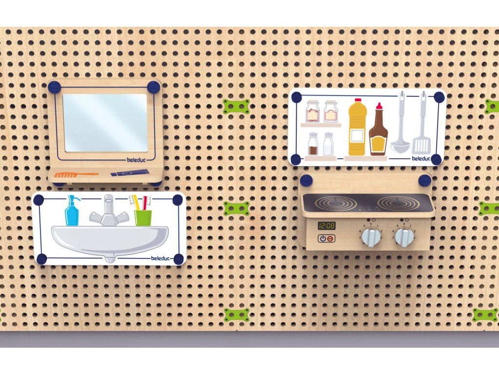 Rozšiřte herní zážitek s XL sadou pro hraní rolí „Kuchyně a koupelna“. Ideální pro nejmenší, kteří sní o tom, že se stanou kuchaři, nebo si užívají napodobování každodenních rutin, jako je čištění zubů ráno – s XL sadou pro hraní rolí se děti mohou ponořit do různých rolí a scénářů. Děti mohou otáčet dvěma knoflíky na kuchyňském pultu, dívat se na svůj odraz v zrcadle a tak si znovu vytvářet situace ze skutečného života nebo vymýšlet zcela nové nápady. Sada obsahuje dvě oboustranně potištěné fólie s různými motivy kuchyně a koupelny, které zajišťují realistické herní prostředí a zároveň podporují kreativní a společenskou hru. Díky snadno sestavitelným prvkům lze scénu bez námahy přeskupovat, což umožňuje flexibilní a přizpůsobitelný design herní plochy.Diskuze