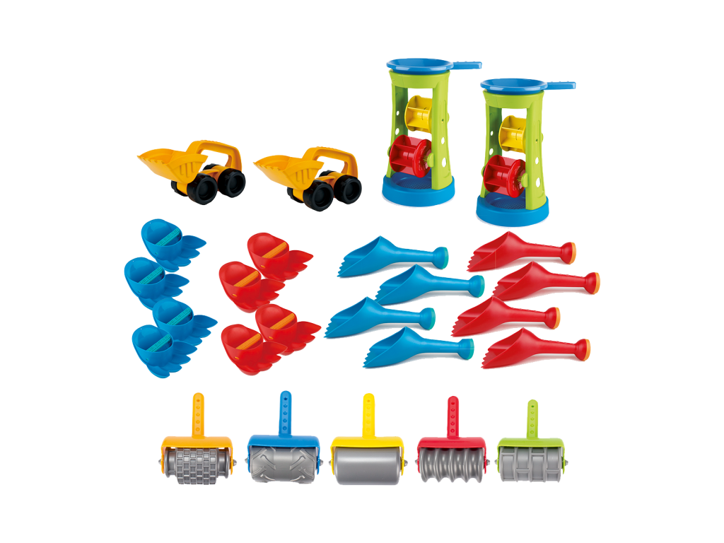 Písková sada „Special“ nabízí mimořádné možnosti. Válejte písek, vytvářejte cesty, kopejte s elektrickým drápem, experimentujte s novými lopatami na dešťovou vodu a objevte unikátní pískový a vodní mlýn s nastavitelným trychtýřem otvorem.Diskuze