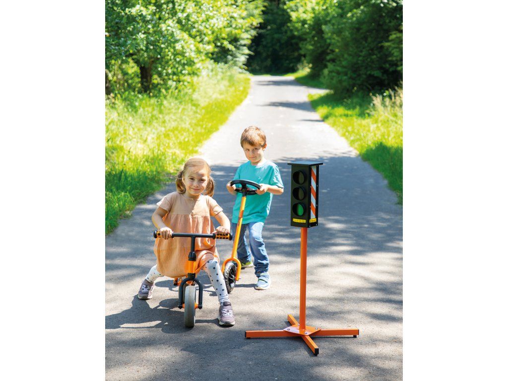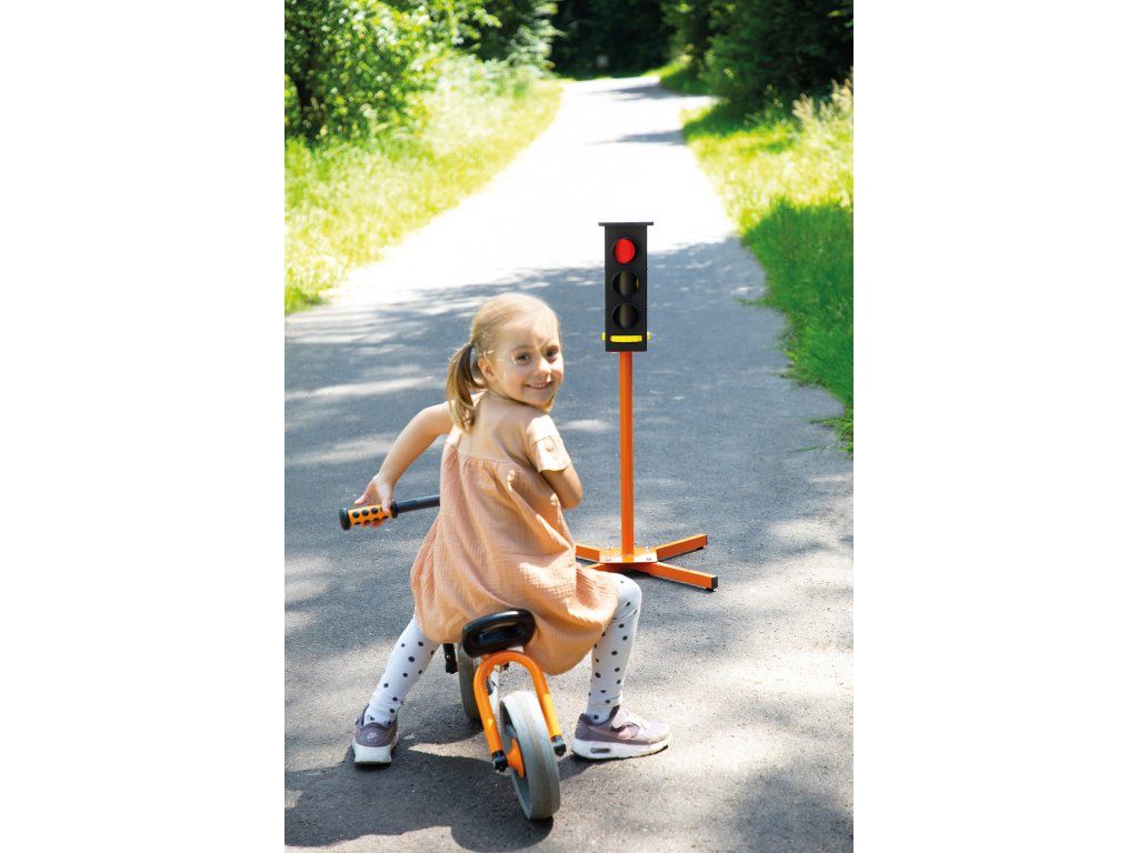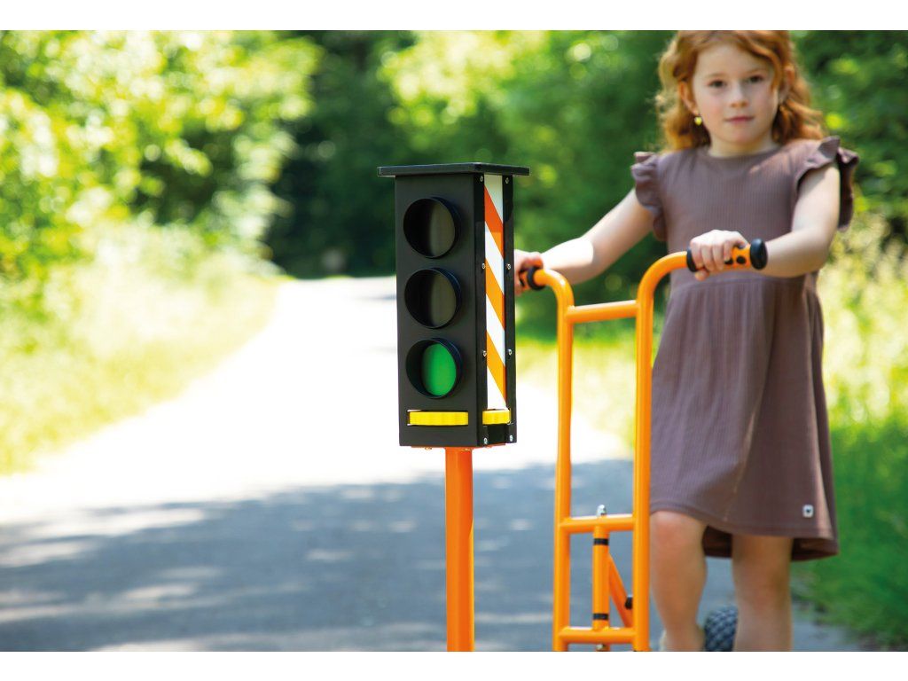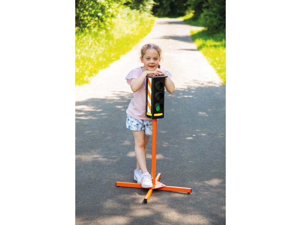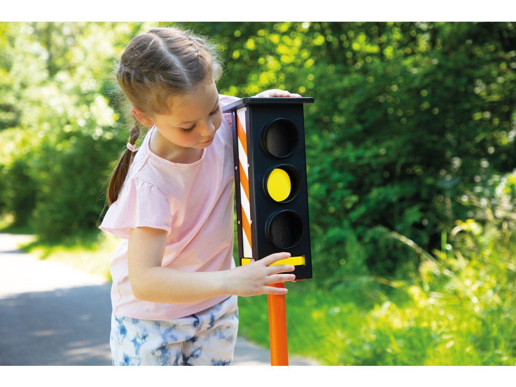 Červená, žlutá, zelená – semafory jsou skvělým způsobem, jak si procvičit první pravidla silničního provozu. Kdo může kdy řídit? Všechny fáze semaforu lze nastavit pomocí otočného kolečka.