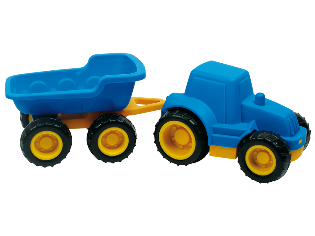 Traktor s přívěsem je skvělým společníkem na pískoviště. Přívěs je odnímatelný a má funkci naklápění, která usnadňuje nakládání a vykládání písku. Traktor i přívěs jsou vyrobeny z odolného plastu odolného vůči UV záření. Ocelové nápravy zajišťují extra stabilitu a tiché pneumatiky z EVA zanechávají v písku i ve sněhu skutečné stopy.Diskuze
