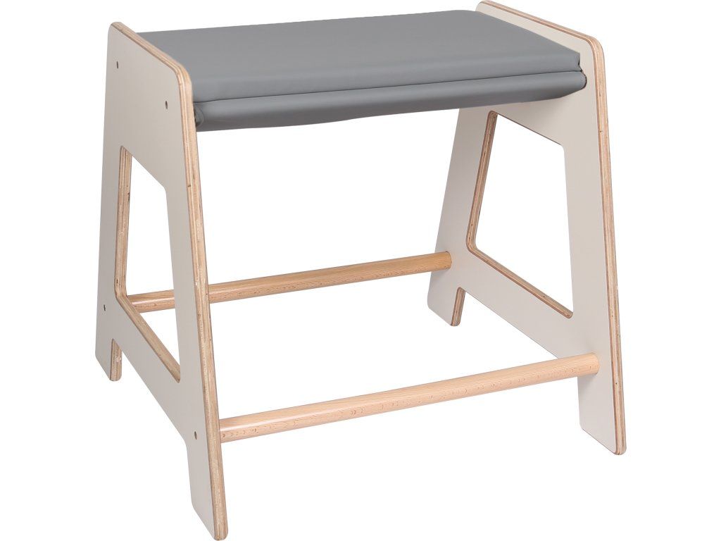 Malý trapézový podstavec vyrobený z březové překližky a masivního bukového dřeva. S měkkým PU sedákem nahoře.