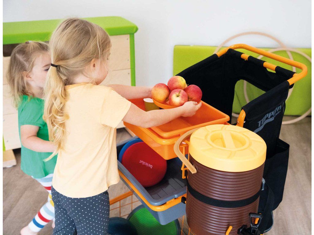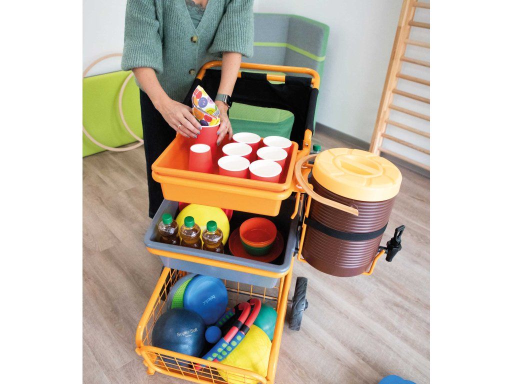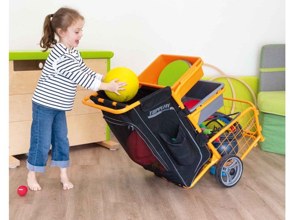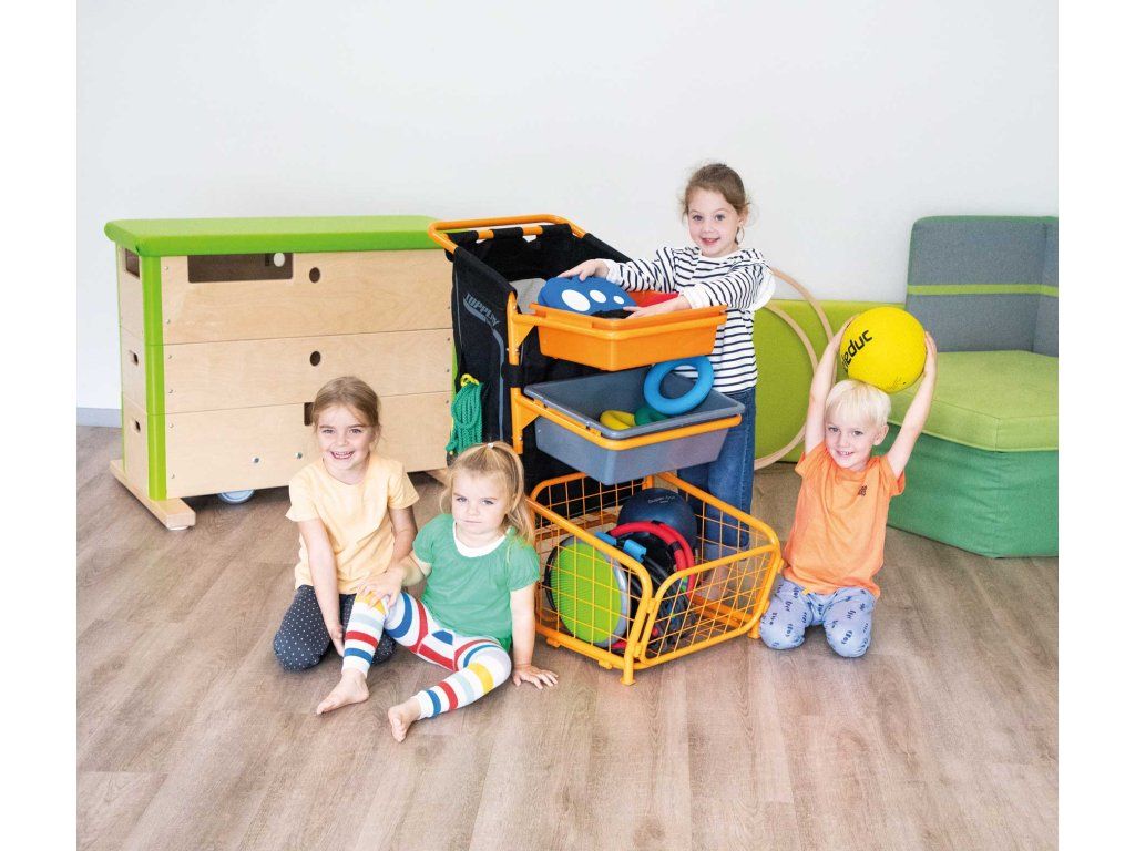 Přepraví všechno! Ať už potřebujete míče a švihadla v posilovně, nebo přírodní materiály sbíráte v lese – nový vozík Multi-Flex je super flexibilní. A také se snadno uklízí.