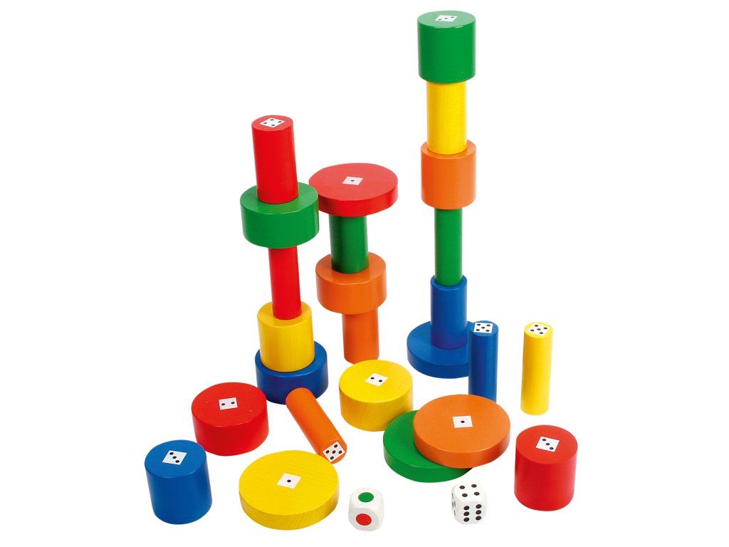 Děti používají buď barevné kostky, nebo kostky s tečkami. V závislosti na barvě nebo počtu teček, které padnou při hození kostkou, děti staví věže a vítězí ten, kdo šikovně naskládá cihly a postaví nejvyšší věž.Diskuze
