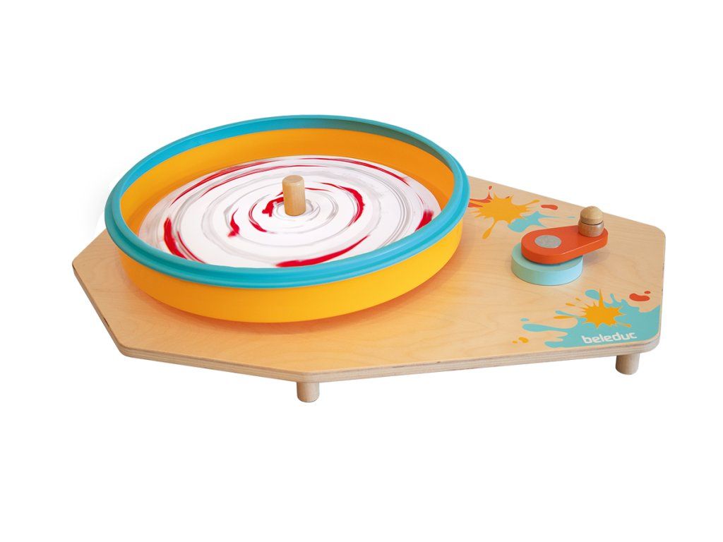 Farebná odstredivka poskytuje deťom jednoduchý spôsob, ako vyčarovať expresívne, dynamické umelecké diela. Rýchlym alebo pomalým otáčaním rukoväte môžu deťom ovplyvniť vývoj obrázka. Farba sa jednoducho nanesie na papier pred alebo počas procesu točenia a odstredivá sila vytvára supervzory.Diskusia