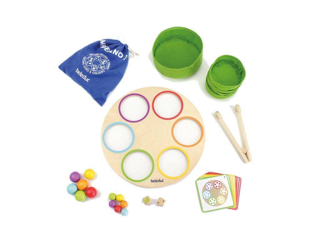 Triediaca hra ponúka niekoľko triediacich aktivít s farebnými guľôčkami v 2 rôznych veľkostiach a dá sa hrať aj ako hra s kockami. Taktiež precvičuje jemnú motoriku pri používaní klieští vhodných pre obe veľkosti guľôčok. Drevená doska má 6 kruhových otvorov označených bielymi oblasťami vo vnútri a vonkajšími kruhmi v 6 rôznych farbách. Deti môžu používať kartičky s aktivitami, hrať hru s kockami alebo tiež využiť svoju kreativitu a voľne sa hrať.Diskusia